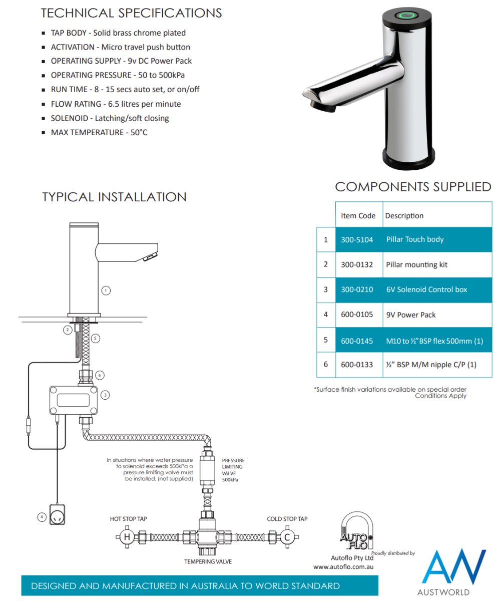 Sensor Tap With Main Power Basin Pillar Touch
